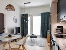UPEASTI KALUSTETTU, UUDEN VEROINEN JA JÄRKEVÄLLÄ HINNALLA. Uudehko kaksio erinomaiselta paikalta lähellä kaikkea, jossa majoittuu jopa 3 henkilöä. Tämä erinomaisella pohjaratkaisulla varustettu kerrostalokoti sijaitsee Kontinkankaan uudella asuinalueella Oys:n ja Kastellin monitoimitalon läheisyydessä, keskustaankin vain 2 km. Asuntoon on valittu laadukkaita ja aikaa kestäviä materiaaleja mm. kestävä/tyylikäs vinyylilattia, lasiseinä saunassa, pilarikiuas, laadukkaat laatoitukset, rosterikoneet, induktioliesi ja integroitu mikro. Huoneisto on kalustettu täysin valmiiksi kodiksi. Kaikki huonekalut, tekstiilit, koneet, astiat ja kalusteet ovat uusia. Varustelu on todella kattava ja tyylikäs. Makuuhuoneessa kaksivuodepaikkaa ja olohuoneessa levitettävä vuodesohva. Huoneet ovat toimivia ja arkea palvelevia. Kauniissa kylpyhuoneessa on tyylikkäät laatoitukset ja saunan lasiseinä tarjoaa avaruutta ja arjen luxusta ja pilarikiukaasta upeat löyöyt. Säilytystilaa löytyy mukavasti kaapistoista. Kontinkankaan asuinalue tarjoaa mahtavat ulkoilumaastot ja paljon tekemistä. Lähistöllä on koulut, päivähoitopaikat ja monenlaiset liikuntamahdollisuudet. Parkkihalli vieressä mahdollistaa auton säilytyksen.