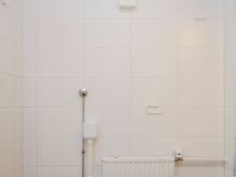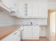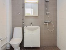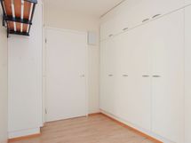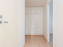 Tilava väliovellinen olohuone on helppo sisustaa ja sen voi myös helposti jakaa eri toiminnoille esim. työpisteelle. Eteisestä löytyy reilusti komeroita säilytykseen. Laatoitetun kylpyhuoneen varustukseen kuuluu pesukoneliitäntä.