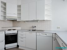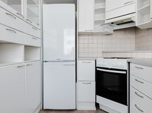 - Varustus: Jääkaappi/pakastin, sähköliesi, liesituuletin, astianpesukone. työtasot laminaattia.