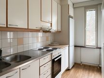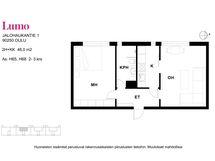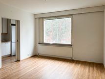 Tässä Lumo-kodissa on toimiva pohjaratkaisu ja se soveltuu niin yhdelle kuin kahdellekin asukkaalle. Kodin lattiassa on kaunis valkokuultolakattu laminaatti ja seinät ovat maalatut. Huoneet ovat tilavia ja säilytystilaa on makuuhuoneessa koko seinän pituudelta kaappeja.  Olohuoneen puolelle mahtuu hyvin ruokapöytä esim. ikkunan eteeen ja vielä jää tilaa muille kalusteille. Valoisa, ikkunallinen kylpyhuone on remontoitu trendikkäästi valkoisen ja harmaan sävyisin laatoin. Kosmetiikkatuotteille löytyy säilytystilaa peilikaapissa ja allaskaapissa. Kylpyhuoneeseen saat mahtumaan vain kapean päältätäytettävän pyykinpesukonee. Käytössäsi on myös maksuton pesutupa ja kuivaushuone joten välttämättä et tarvitse omaa konetta.  Keittokomerossa on kaikki mitä tarvitset, sopivasti säilytystilaa ja varusteena jääpakastinkaappi. Keittokomero on erotettu olohuoneesta tilaa säästävällä liukuovella.