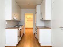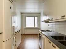 Tässä Lumo-kodissa on keittiö tilava, jossa kaapistot ovat vaaleilla ovilla ja paksuin rosterivetimin. Työtaso on samaan lattian sävyyn puun sävyisellä minaatilla. Keittiön varusteisiin kuuluu jääpakastinkaappi, keraaminen liesi sekä astiapesukone. Huoneiston lattiamateriaalina tammilaminaatti ja seinät vaalealla maalipinnalla. Olohuoneen yhteydessä on lasitettu parveke. Kylpyhuone on laattapinnalla ja tilavaraus on myös pyykinpesukoneelle. Koti on oivallinen myös kimppa-asumiseen ovellisen olohuoneen ansiosta. Säilytystilaa löytyy eteisen sekä makuuhuoneen kaapistoissa. p>Vuokraa tämäkin koti verkkokaupastamme!
