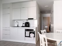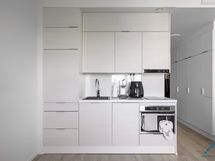 Tämä kuudennen (6/8) kerroksen alkovillinen koti etsii nyt vuokralaista! Asunnon sisääntulon yhteydessä on järkevä ja käytännöllinen alkovi. Asunnon seinät on valkoisiksi maalatut ja lattia kaunista laminaattia. Keittiössä on varusteluna yhdistelmäuuni, jossa mikroaalto- ja kiertoilmatoiminto, liesikupu, integroitu astianpesukone 45cm, 2-levyinen induktioliesitaso sekä integroitu jääkaappi pakastelokerolla. Keittiön kaapistot on vaaleat, taso mattavalkoista laminaattia ja musta komposiittiallas. Pesuhuoneessa on tilavaraus pyykinpesukoneelle ja kuivausrummulle. Kylpyhuoneen seinät valkoista ja lattia harmaata laattaa. Huoneistossa on ikkunaseinillä soveltuvilla osilla verhokiskot. Ranskalaiset pariovet tuovat mukavan lisän asuntoon.