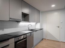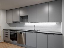 - Keittiön varusteet: Jääkaappi, erillinen pakastin, astianpesukone, liesituuletin ja erillisuuni. Liesi: Induktioliesi.