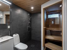 - Pesutilojen varusteet: WC-istuin, suihku, lattialämmitys, allaskaappi, peilikaappi, bidee-suihku ja pesukoneliitäntä. Erillisten WC:n lukumäärä: 1. Erillisen WC:n varusteet: WC-istuin, peilikaappi, allaskaappi ja bidee-suihku.