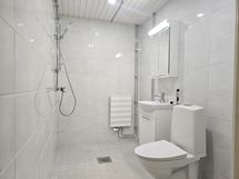 - Pesutilojen varusteet: WC-istuin, suihku, pesukoneliitäntä, allaskaappi ja peilikaappi.