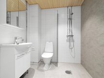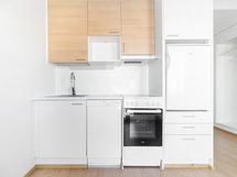 Keittiön varusteina liesi, jääkaappi pakastinlokerolla ja astianpesukone. Laatoitetussa kylpyhuoneessa tilavaraus pyykinpesukoneelle sekä mukavuutena sähköinen lattialämmitys. Tässä asunnossa on ranskalainen parveke.