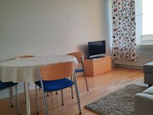 Ylimmän kerroksen persoonallinen kalustettu 2h, kk ja parvekkeet. Rauhalliset naapurit. Vuokrataan mielellään pidemmäksi aikaa, mutta myös lyhemmät ajat ovat mahdollisia. Näkymät parvekkeelta pitkälle kaupungin suuntaan. Tämä valoisa asunto on juuri pintaremontoitu. Katot ja seinät on maalattu, eteiseen ja keittokomeroon on asennettu vinyylilaatta lattiat. Muissa huoneissa on lämpöinen koivuparketti. Tämä asunto sopii kahdelle, myös kaverukselle, sillä molemmat huoneet ovat tilavia ja molemmissa huoneissa on runsaasti säilytystilaa ja parvekkeet. Kummassakin huoneessa on nukkumapaikat kahdelle. Sänkyjen mukavuuteen on panostettu. Varsinaisessa makuuhuoneessa on 2x90 leveä sänky yhtenäisellä petauspatjalla ( voi tarvittaessa erottaa toisistaan). Olohuoneen divaanisohvan saa levitettyä 140cm sängyksi ja siihen on lisäksi paksu petauspatja. Keittiöstä löytyy pieni liesi uunilla, liesituuletin, astianpesukone ja mikro. Keittiön varusteisiin kuuluu kahvinkeitin, vedenkeitin ja perus työvälineet ja kattilat ja pannu sekä astiat neljälle. Taloyhtiössä on taloyhtiönetti ja kaapeli TV. Alue sijaitsee lähellä sairaalaa, n.2,8km Oulun keskustasta. Lähellä on kauppa, koulut ja kirjasto. Alueella on hyvät julkisen liikenteen kulkuyhteydet eri puolille Oulua, mm keskustaan ja yliopistolle. Bussipysäkit ovat lähellä taloa. Autoilija saa pysäköityä auton viereiseen Europarkin parkkitaloon. Oulussa on tiheä pyörätieverkosto ja liikut helposti myös pyörällä. Asunnon vuokra määräytyy tapauskohtaisesti. Siihen vaikuttaa vuokra-aika ja mitä vuokraan sisällytetään (vesi, sähkö, liinavaatteet eri maksusta). Samoin vakuus sovitaan tapauskohtaisesti. En käytä Qacan vakuutta. Luottotiedot tarkistetaan eikä niissä saa olla merkintöjä. Tämä asunto ei sovi allergisille, koska perheen villakoira on satunnaisesti ollut asunnossa. Asuntoon ei kuitenkaan voi tuoda lemmikkejä. Viestillä saat lisää kuvia asunnosta.