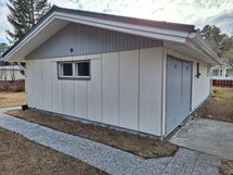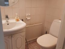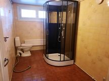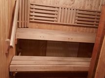 Saunassa on uusi puukiuas. Kylpyhuoneessa on suihkukaappi, wc-pytty sekä liitännät pesukoneelle.