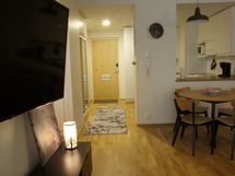 Myös kalustamattomana, pyykkikone ja kuivausrumpu, sekä seinä tv sisältyvät vuokraan.