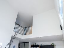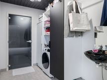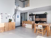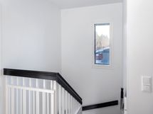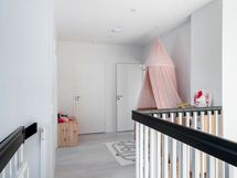 Korkea huonekorkeus olohuoneessa tuo paljon valoa huoneistoon. Keittiön saarekkeessa kätevä nykyaikainen saarekeliesituuletin. Asuintilat ja yksi makuuhuoneista ovat alakerrassa. Suuren kodinhoitohuoneen kautta pääset takaterassille vilvoittelemaan saunasta. Saunassa upea kokolasiseinä. Yläkerrassa on kolme makuuhuonetta, josta yhdestä pääsy parvekkeelle.