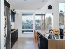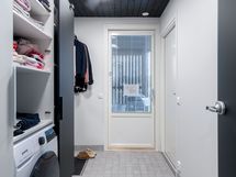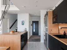 Kuvat ovat saman taloyhtiön vastaavasta asunnosta, jossa samat materiaalivalinnat, asunto on peilikuvaltaan vastaava.