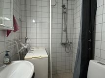 Suihku, peilikaappi, pesukoneliitäntä, lattialämmitys, kiinteät valaisimet.