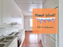 300 € alennus ensimmäisestä vuokrasta! Kampanjan ehdot: ensimmäinen mahdollinen irtisanomispäivä on 5 kk vuokrasopimuksen aloituksesta. Voimassa ainoastaan valikoiduissa kohteissa, alennus hyödynnettävissä ainoastaan kampanja-aikana tulleisiin hakemuksiin. Kampanjasopimukset koskevat vain uusia vuokrasopimuksia, kampanjaa ei voi yhdistää muihin alennuksiin tai kampanjoihin.