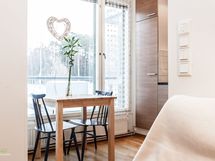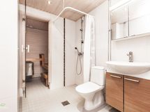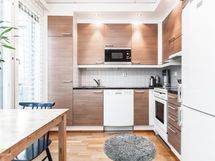 Talossa on hissi ja esteetön kulku. Asunnossa on laminaattialattia ja seinissä maalipinta. Keittiön varustuksena jääkaappipakastin, liesi ja astianpesukone. Kylpyhuoneessa on paikka ja liitännät pesutornille. Omassa saunassa rentoudut pitkien päivien päätteeksi ja lasitettu parveke jokinäkymällä tuo yhden huoneen lisää aina keväästä alkaen.