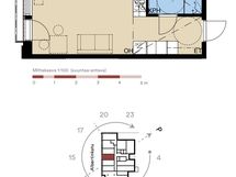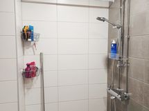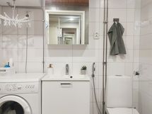 Varustus: suihkuseinä, pesukoneliitäntä, lattialämmitys, wc-istuin, suihku, peilikaappi.