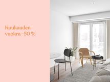 Tässä kodissa ensimmäinen vuokra on –50 %, kun sopimuksesi alkaa viimeistään 1.3.2026. Etu on voimassa uusille asiakkaille.