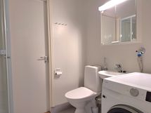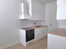 Asunnon seinät valkoisella maalipinnalla ja lattiassa tyylikäs laminaatti. Tilavan keittiön varustukseen kuuluu jääkaappipakastin, astianpesukone, liesi/uuni sekä paljon säilytystilaa. Kylpyhuoneessa suihkukaappi ja sieltä löytyy myös pyykkikoneelle liitäntä. Kuvissa näkyvä pesukone voidaan jättää tarvittaessa asuntoon. Asunnossa on ison vaatekaapin lisäksi myös oma parveke, joka tuo yhden huoneen lisää aina keväästä alkaen!