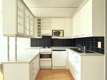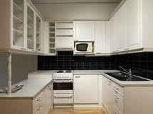 Keittiössä hyvin säilytystilaa ja siistit kaapistot. Asunnossa on oma sauna ja ranskalainen parveke, jotka tuovat viihtyisyyttää asumiseen.