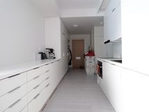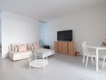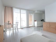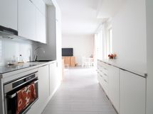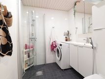 Asunnon materiaaleiksi on valittu kaunis laminaattilattia ja seinät on maalattu valkoiseksi. Keittiössä valmiina yhdistelmäuuni, jossa mikroaalto- ja kiertoilmatoiminto. Keittiöön kuuluu myös 4-levyinen induktioliesitaso ja integroitu astianpesukone sekä täyskorkea jääkaappipakastin. Kaakeloidussa kylpyhuoneessa paikka ja liitännät omalle pyykinpesukoneelle. Ikkunoissa valmiina sälekaihtimet sekä verhokiskot. Asunnossa myös oma lasitettu parveke. Taloyhtiöstä löytyy taloyhtiön sauna (erillismaksusta), ulkoiluväline- ja pyörävarasto, irtaimistovarasto sekä oleskelu- ja leikkialueet. Asunnon mukana vuokrataan kylmä autohallipaikka hintaan 50€/kk.
