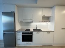 Asunnossa on moderni ja vaalea yleisilme: laminaattilattiat ja vaaleat maalatut seinät luovat raikkaan pohjan sisustukselle. Keittiö on hyvin varusteltu Whirlpoolin kodinkoneilla, joihin kuuluvat integroitu astianpesukone, kalusteuuni, induktioliesi sekä jääkaappipakastin.