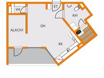 Tarjolla ylimmän kerrokse tilava yksiö. Asunnosta löytyy avokeittiö, jossa on astianpesukone helpottamassa arkea. Alkovi erottelee hyvin makuutilan muusta asunnosta ja oma parveke tuo mukavasti lisätilaa etenkin lämpiminä kuukausina. Kylpyhuoneesta löytyy liitännät pyykinpesukoneelle sekä oma sauna.