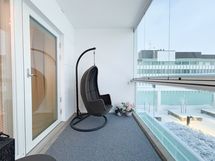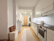 Asunnossa on tyylikäs keittiö. Keittiöstä löytyy astianpesukone sekä induktioliesi. Laatoitetusta kylpyhuoneesta löytyy pyykinpesukone. Sekä eteisen että päämakuutilan kaapistojen avulla säilytystilaa on runsaasti. Tilava lasitettu parveke tuo lisätilaa keväästä syksyyn.