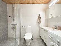 Varusteet: suihkuseinä, pesukone, pesukoneliitäntä, WC, suihku, peilikaappi