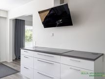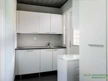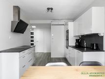 - Varusteet: jääkaappipakastin, integroidut kodinkoneet, integroitu astianpesukone. Työtaso: laminaattitaso. Liesi: mikroaaltouuni, induktioliesi, liesituuletin. Nykyaikainen ja siisti keittiö laadukkailla, integroiduilla kodinkoneilla.