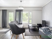 - Asunnossa on terassi. Hyvänkokoinen terassialue.