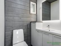 - Varusteet: kaksi suihkua, lattialämmitys, kiinteät valaisimet. WC: Molemmissa kerroksissa wc-tilat. Yläkerran wc kylpyhuoneen yhteydessä, alakerrassa erillinen wc. Varusteet: lattiaan asennettu WC, bidee, lattialämmitys, allaskaappi, peili