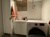 Suihku, Pesukonevalmius, Laattalattia, Laattaseinä, Peilikaappi, Allaskaappi, Rättipatteri, Lattialämmitys