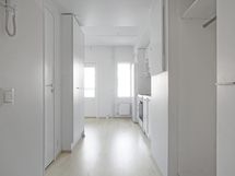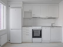 Tässä vuonna 2018 valmistuneessa kerrostalokodissa on vaalea laminaattilattia ja valkoisiksi maalatut seinät. Keittotilassa on astianpesukone, uuni ja keraaminen liesi sekä jääkaappipakastin. Laatoitetussa kylpyhuoneessa on liitäntämahdollisuus pyykinpesukoneelle.