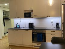 Tässä kuudennen (6/8) kerroksen valoisassa kaksiossa on laminaattilattiat. Seinät ja katto on maalattu valkoiseksi. Keittiö varustetaan kalusteuunilla, keraamisella keittotasolla sekä astianpesukoneella. Kaakeloitu kylpyhuone on varustettu sähköisellä ns. ”mukavuuslattialämmityksellä”. Kylpyhuoneessa on pyykkikoneelle ja kuivausrummulle liitännät ja tilavaraus. Asunnossa asumismukavuutta lisäämässä oma sauna ja lasitettu parveke. Huoneistossa on sälekaihtimet ikkunoissa, ja taloyhtiö laajakaista sisältyy myös vuokraan. Vesimaksu mittarin mukaan, ennakko 20,00 € kk/hlö.