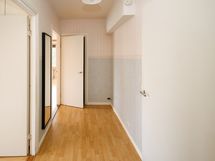 Lattia: Keittiössä: laminaatti. Pesutiloissa: laatta. Olohuoneessa: laminaatti. Makuuhuoneessa: laminaatti. Seinät: Keittiössä: maalattu, osalaatoitus. Pesutiloissa: maalattu, osalaatoitus. Olohuoneessa: tapetti. Makuuhuoneessa: tapetti.