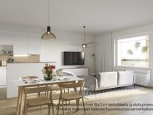 Asumiseen on tarjolla hyvin suunniteltuja ratkaisuja sekä mukavuutta, materiaaleissa on kiinnitetty huomiota toimivuuteen. Keittiö on varustettu keraamisella liedellä, jääkaappi-pakastimella sekä astianpesukoneella. Lattiat ovat helppohoitoista laminaattia. Kylpyhuone on laatoitettu ja varustettu lattialämmityksellä.