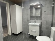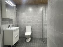 Varustus: suihkuseinä, pesukoneliitäntä, lattialämmitys, wc-istuin, suihku, peilikaappi.