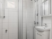 - Pesutilojen varusteet: WC-istuin, suihku, suihkukaappi, pesukoneliitäntä, lattialämmitys, peilikaappi, allaskaappi ja bidee-suihku.