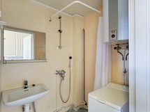 Kylpyhuone, suihku, pesukoneliitäntä pyykinpesukone.