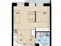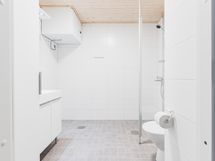 Varustus: pesukoneliitäntä, lattialämmitys, wc-istuin, suihku, peilikaappi.