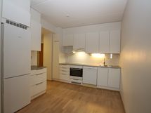 Asunnon sydämenä toimii tilava olohuone ja keittiö, jotka muodostavat avaran ja viihtyisän oleskelutilan. Keittiössä on hyvin kaappitilaa ja työskentelytasoa, ja sen yhteyteen mahtuu myös ruokailuryhmä.
