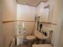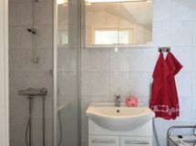 Varustus: suihkuseinä, pesukoneliitäntä, lattialämmitys, suihku, peilikaappi.