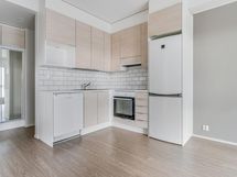 Keraaminen liesi. Jääpakastinkaappi. Astianpesukone.