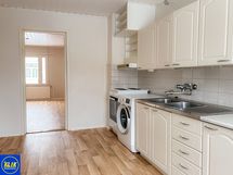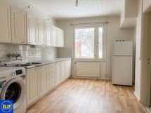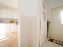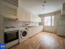Keittiössä on hyväkuntoiset kodinkoneet ja paljon kaapistoja. Varustukseen kuuluu pyykinpesukone, joka on valmiina uuden asukkaan käyttöön. Keittiön kaapissa on myös pieni astianpesukone, joka helpottaa arkea. Keittiöstä on näkymä rauhalliselle sisäpihalle. Tilava huone on valoisa ja näkymä kadulle päin. Kylpyhuone on perussiistissä kunnossa. Wc-tilaan on kulku kylpyhuoneesta.