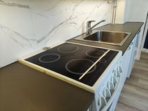 Asunnossa on kauttaaltaan kosteudenkestävä vinyylilattia. Juuri remontoidussa kylpyhuoneessa ja wc:ssä on sähköiset lattialämmitykset.