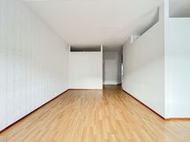 Olohuone: laminaatti Vessa: muovi Keittiö: laminaatti
