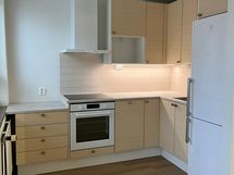 - Tilaa isolle ruokapöydälle, Paljon kaappitilaa, Paljon työskentelytilaa, Suuri tiskipöytä, Laminaattitasot, Astianpesukone, Integroidut koneet, Induktioliesi, Jää-pakastinkaappi, Liesi tai uuni erikseen
