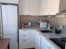 - Keittiön varusteet: Liesi, jääkaappipakastin, astianpesukone ja erillisuuni. Liesi: Keraaminen liesi. Työtason materiaali: Laminaatti. Keittiö on remontoitu 2018 jolloin myös keittiönkaapit on uusittu.