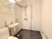 - Pesutilojen kuvaus: Kylpyhuone/wc: wc-istuin, bidesuihku, allas, peilikaappi, suihku, suihkuseinä, pesukoneliitäntä.