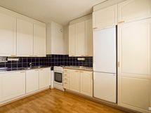 - Keittiön varusteet: Jääkaappipakastin ja liesi. Liesi: sähköliesi. Työtason materiaali: Laminaatti. Osittainen keittiöremontti tehty, uudet kaapinovet ja kodinkoneet.