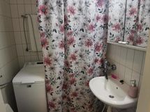Kylpyhuone, suihku, peilikaappi, pesukoneliitäntä.